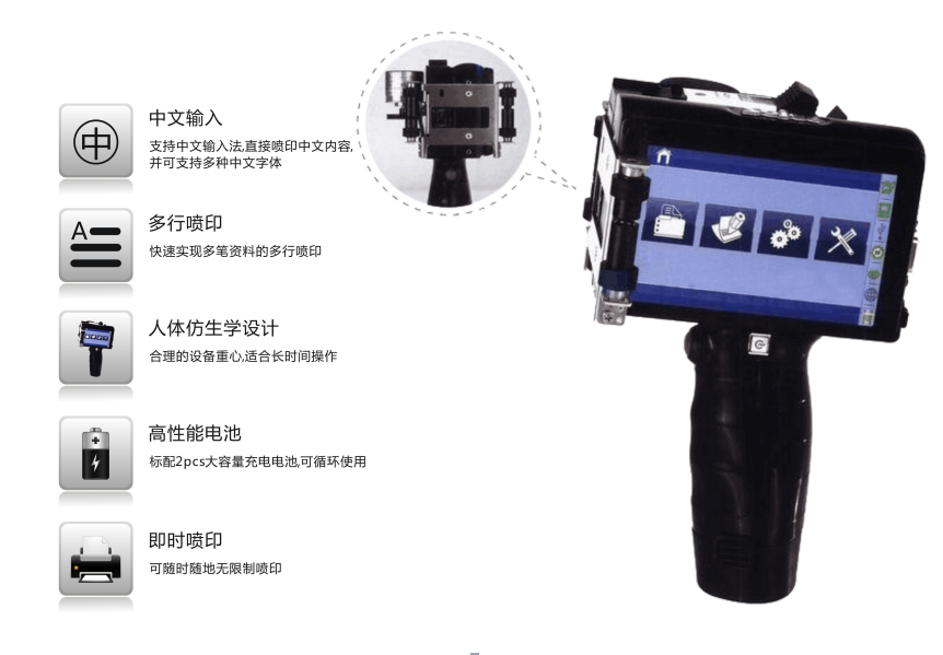 噴印內容:條碼、字母、數字.圖形、日期/時(shí)間、有效期、班別、普通計數器、箱號/棧板號