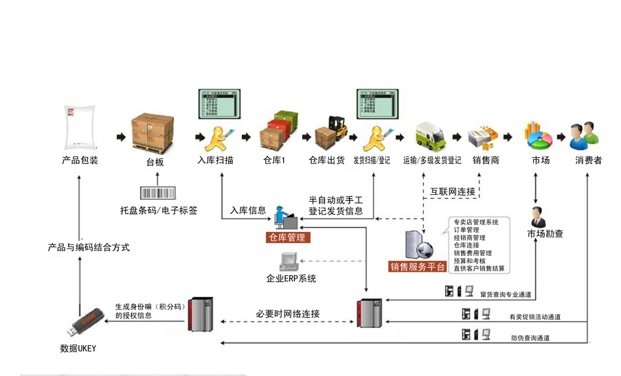 倉儲環(huán)節:從生產(chǎn)(貼)到入庫(可選擇兩套系統,掃描入倉和直接不掃描入倉。)直至市場(chǎng)查詢(xún)(消費者、稽查人員等)等流通環(huán)節查詢(xún)等功能上,善進(jìn)產(chǎn)品防偽防竄解決方案都具有無(wú)法比擬的完整性和靈活性。除此之外,產(chǎn)品防偽防竄解決方案所具備的保證安全性的加密功能,功能的可擴性以及高效的運作成本,都顯示出無(wú)比的優(yōu)越性。善進(jìn)“數字化流向監管系統”集成解決方案強大的防偽防竄全方位跟蹤追溯效果,穩定的產(chǎn)品性能,專(zhuān)業(yè)的售后服務(wù),正在幫助更多的企業(yè)實(shí)現完善的產(chǎn)品跟蹤防偽、防竄貨管理。